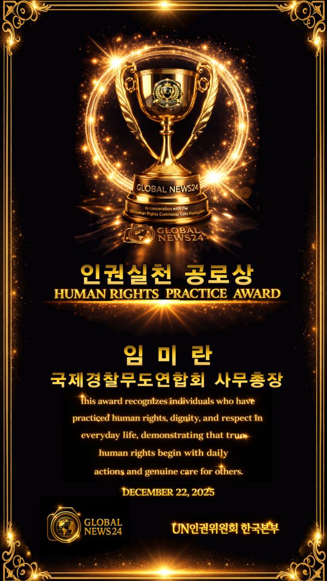이번 인권실천 공로상 수상 소식은 글로벌 뉴스24를 통해 국내외에 공식 보도되며, 국제경찰무도연합회가 지향하는 ‘정의·인권·책임의 무도’ 가치 확산에 중요한 이정표가 될 것으로 기대된다.